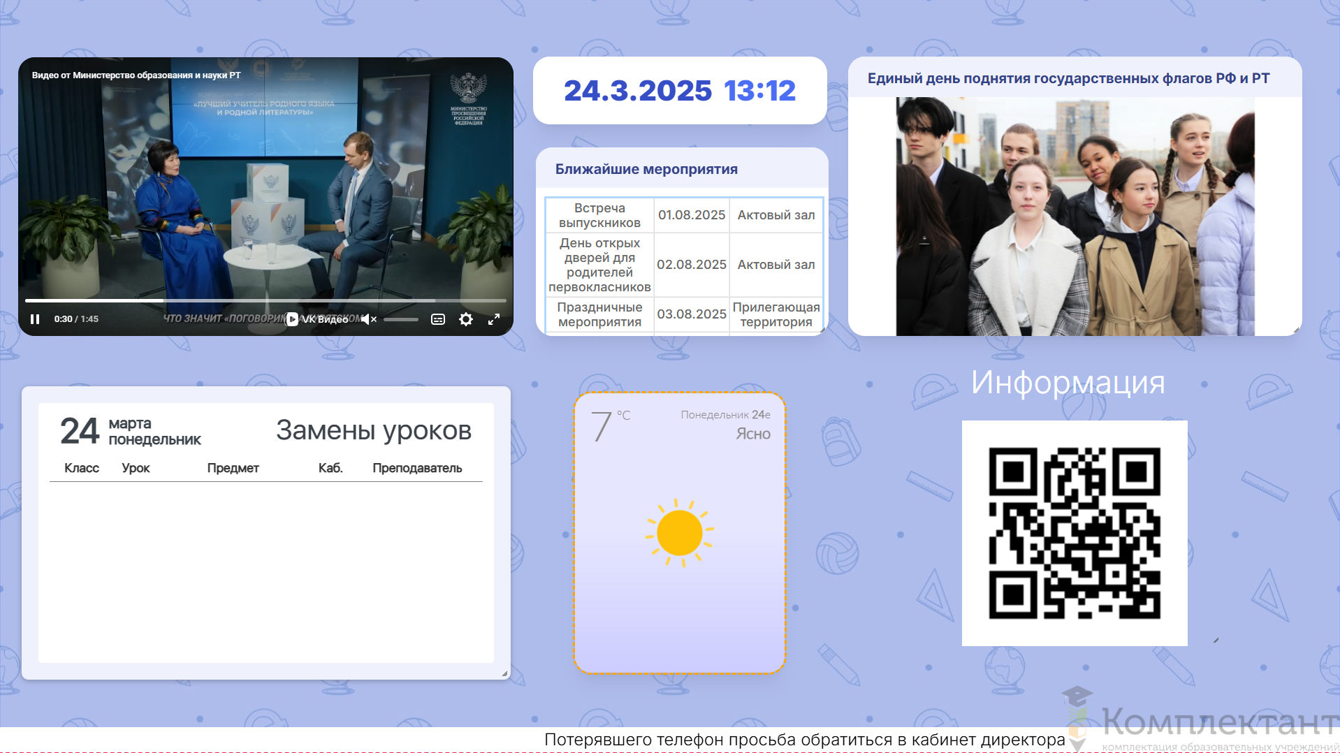 Школьный информатор: интерактивное расписание комплект Стандартный, лицензия на 3 года