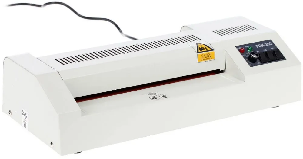 FGK-260 — пакетный ламинатор от компании PingDa. Предназначен для ламинирования печатной продукции до формата А4 включительно. Регулировка температуры, реверс, металлический корпус, четыре вала (два из них с внешним нагревом), работает со всеми толщинами пленок. Это модель для офисов и организаций со средним объемом работ.