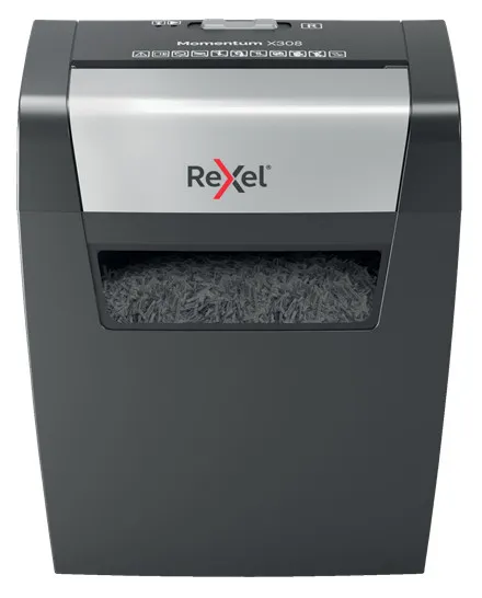 Шредер Rexel Momentum X308 уничтожает до 8 листов за один раз, а время непрерывной работы 3 минуты делает его идеальным для использования дома. Уровень секретности P3, поперечная резка, фрагменты 5 х 42 мм, объем корзины 15 литров (100 листов формата A4).