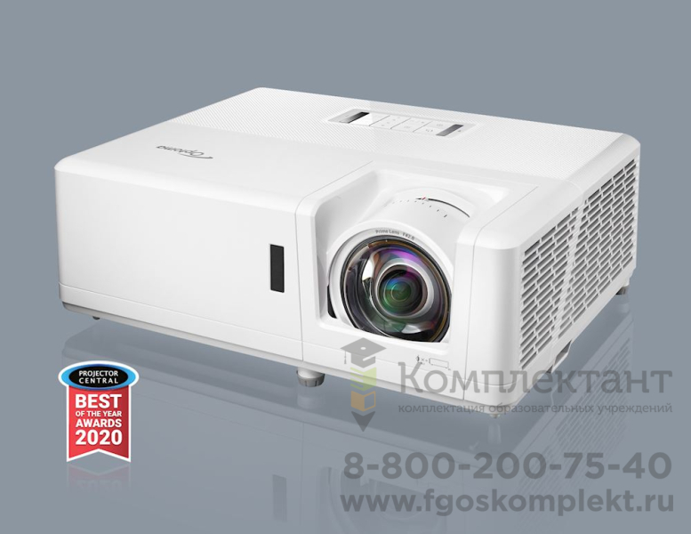 Лазерный проектор Optoma [ZH406ST-W] DLP FullHD(1920*1080),4200 ANSI lm;300000:1;IP6X;TR 0,5:1;HDMIx2;VGAx1;Mic3,5 x1; AudioIN x2;VGAOut x1;AudioOUTx1;USB-A 1.5A;RS232;RJ45;12V Trigger;USB-B;3D-sync;10Wx2; 30dB; 5.5kg. белый (E1P1A3FWE1Z1)