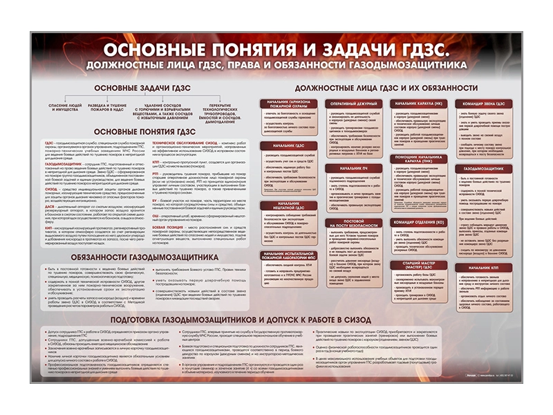 Стенд "Основные понятия и задачи ГДЗС. Должностные лица ГДЗС, права и обязанности газодымозащитника"