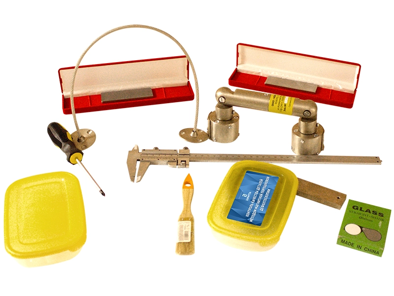 Комплект настольного исполнения и представляет собой набор инструментов и материалов для проведения магнитопорошкового контроля металлов.