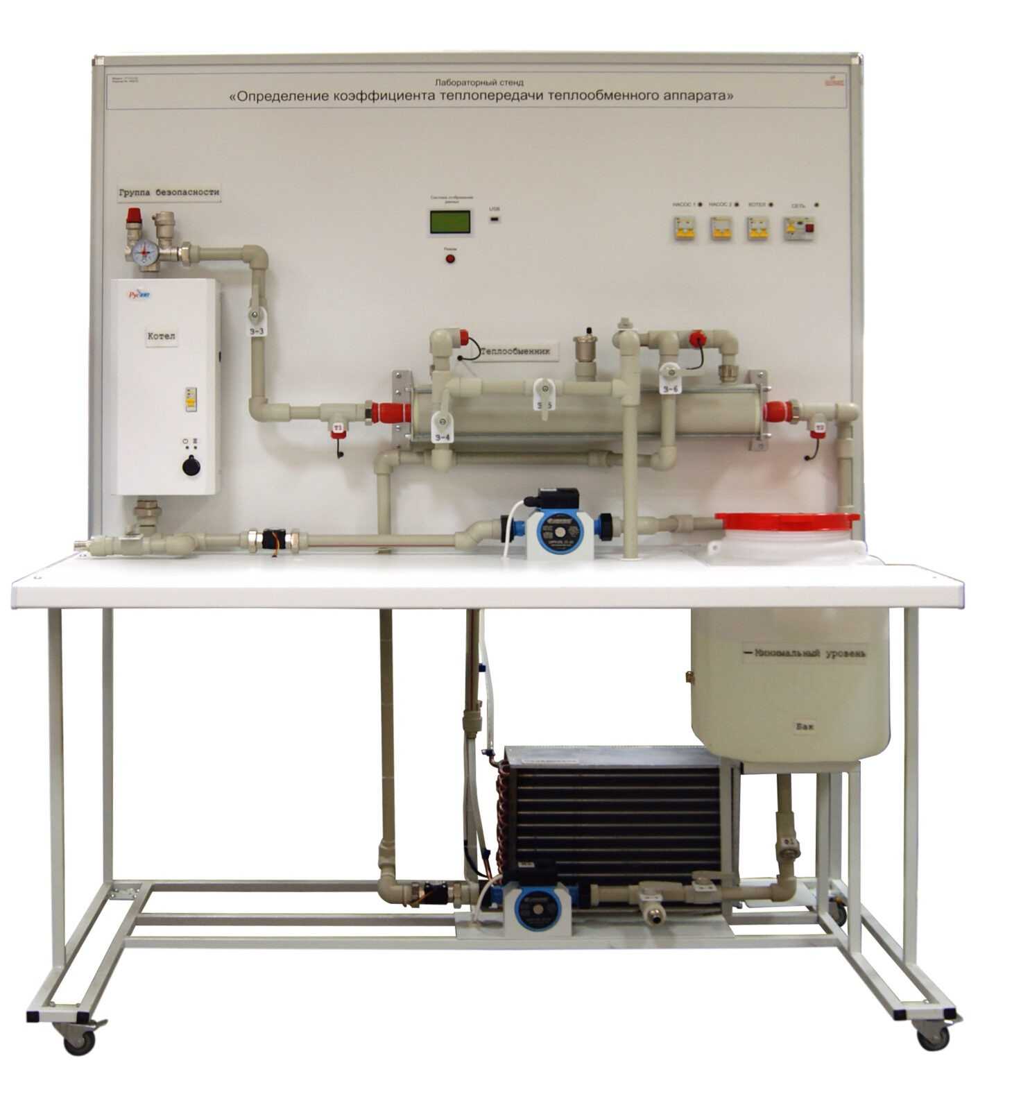 Учебное оборудование «Определение коэффициента теплопередачи теплообменного аппарата» предназначено для проведения лабораторных работ по курсу «Основы гидравлики и теплотехники», «Тепломассообменное оборудование» и «Теплопередача» в системе среднего и высшего профессионального образования.