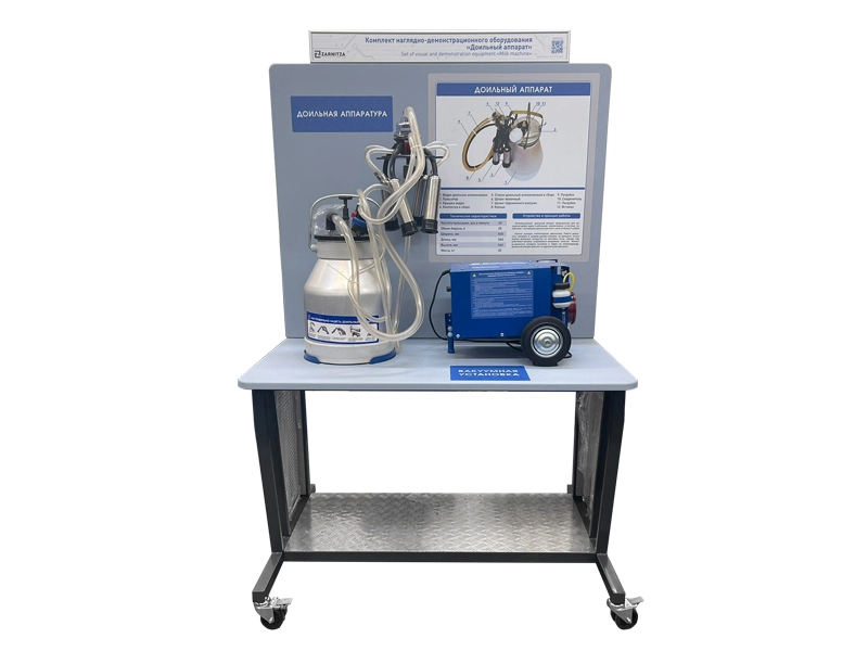 Комплект наглядно-демонстрационного оборудования "Доильный аппарат" предназначен для проведения комплекса теоретических и практических работ по изучению конструкции и принципа действия основных узлов и агрегатов доильного аппарата.