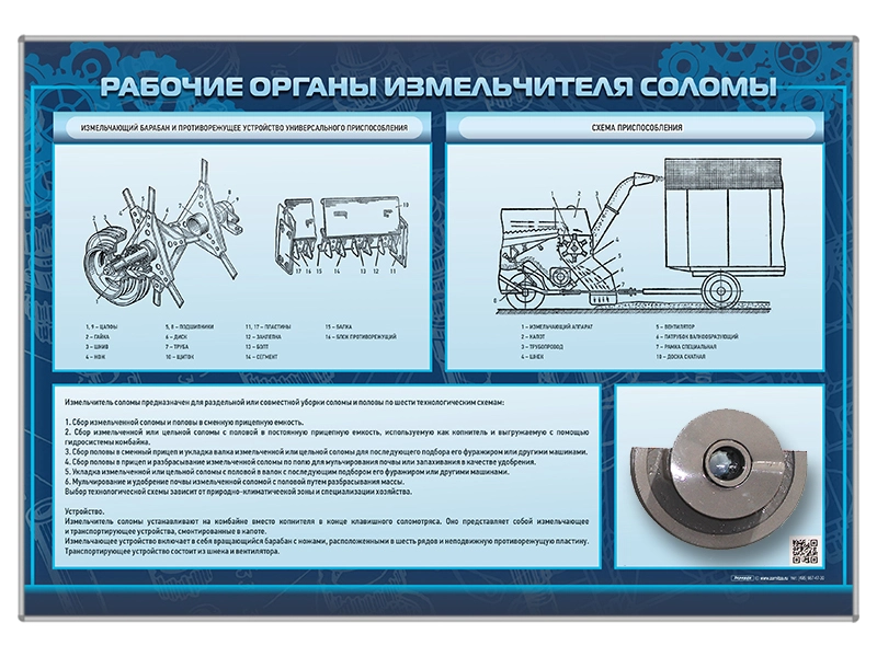 Интерактивный стенд предназначен для получения знаний о принципе действия измельчителя соломы и его рабочих органов.