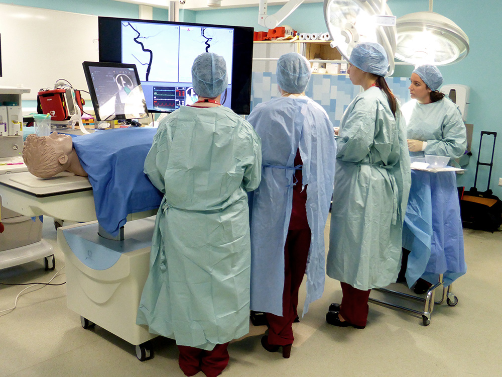 Вмешательства на сосудах под контролем рентгеноскопии отличаются не только сложностью и точностью выполнения манипуляций, но и облучением как пациента, так и членов операционной бригады. Повышению радиационной безопасности, снижению лучевой нагрузки и времени операции, сокращению использования контраста способствует регулярное обучение в безопасных условиях с использованием симуляционного оборудования.