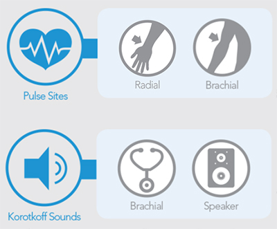 - аускультация тонов Короткова на плечевой артерии реальным стетоскопом