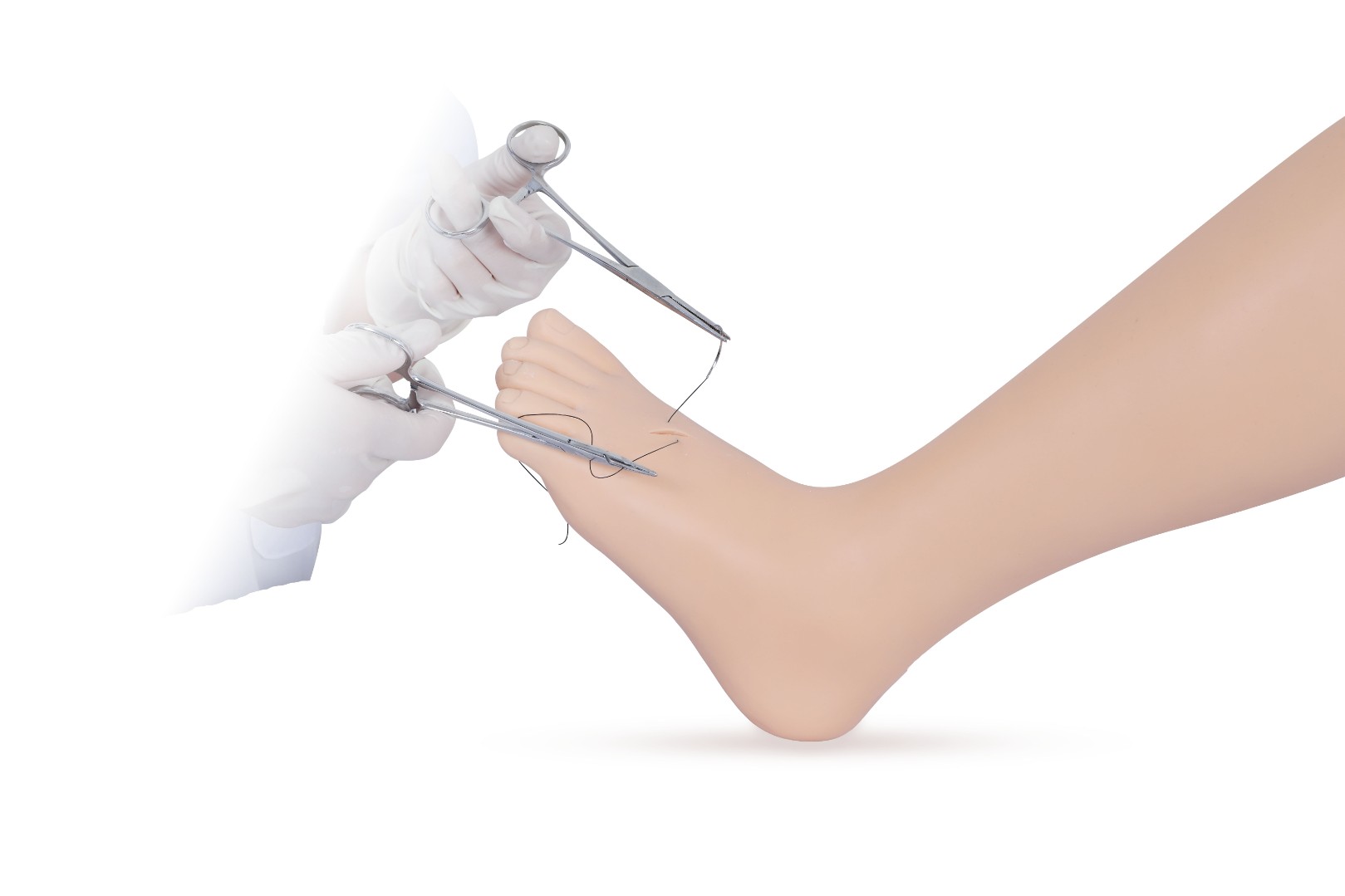 Модель ноги для наложения швов с нанесенными разрезами для ушивания