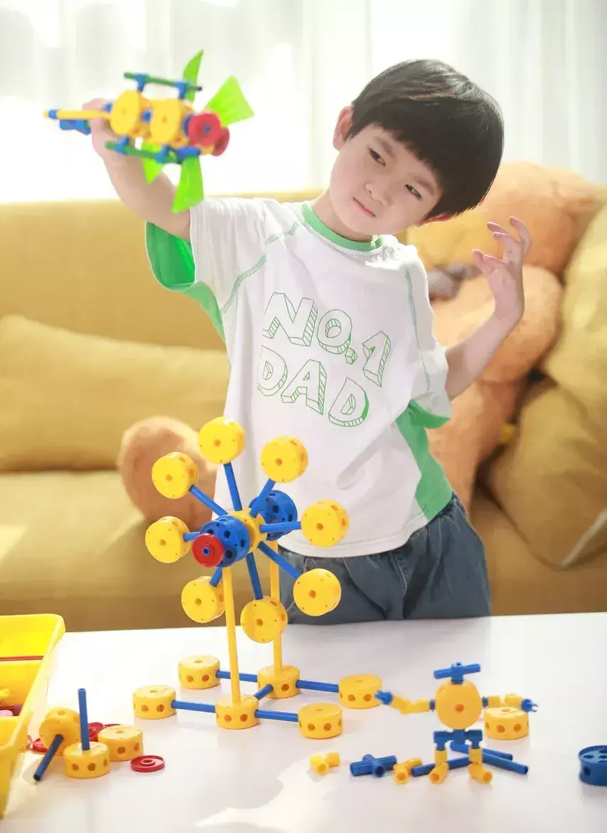 Вместе с конструктором ThinkerToy дети пройдут все этапы конструирования: от простых до сложных структур, от 2D до 3D-моделей, от статических до динамических объектов.
