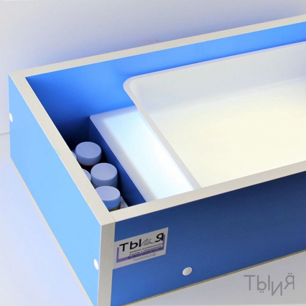 Стол имеет большой поддон для рисунков формата А3. Для WOW-эффекта внутри стола встроена светодиодная яркая подсветка, благодаря которой рисунки "оживают" на глазах.