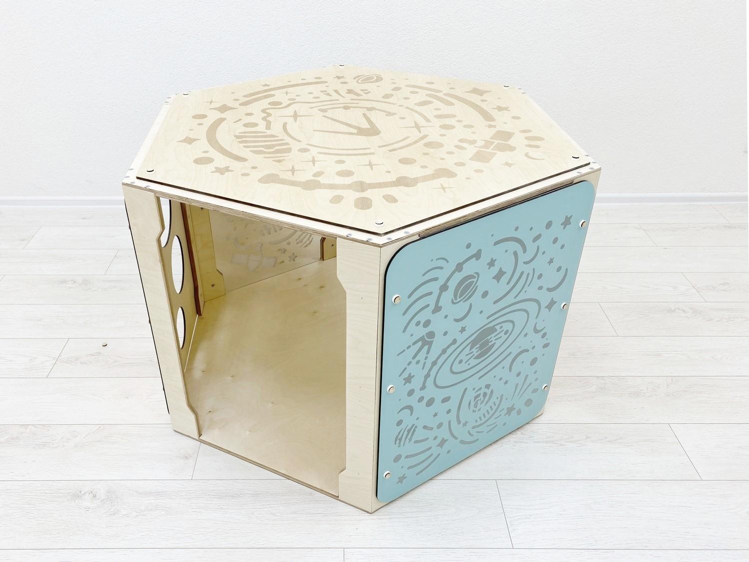 Внутри модули украшены тактильными панелями для развития сенсорной чувствительности, а снаружи – лазерной гравировкой и фигурными окошками. Они идеально стыкуются между собой и позволяют конструировать из них замки и лабиринты для маленьких непосед.