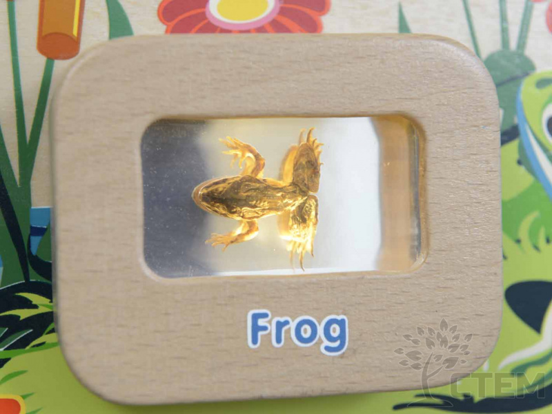 Панель для изучения жизненного цикла лягушки, с настоящими образцами, в прозрачных акриловых блоках, которые позволяют детям внимательно рассмотреть каждый из 4 этапов ( яйцо, головастика, лягушку и взрослую лягушку). Внутри каждого блока имеется подсветка, которая включается при помощи пульта.