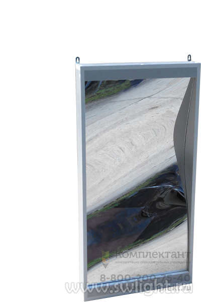 Волнообразно изогнутое зеркало, вставленное в раму. Материал исполнения - небьющийся безопасный зеркальный пластик.