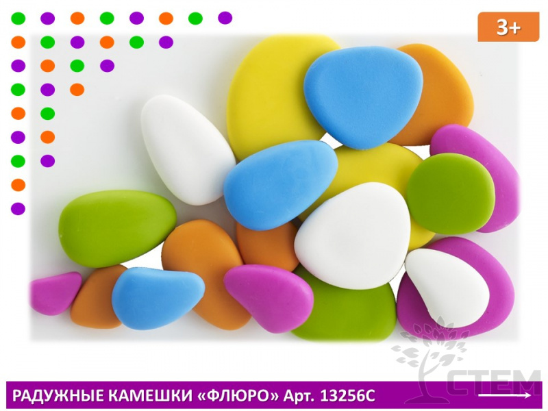 Радужные камешки "Флюро" 9 формы, 6 цветов, 39 шт. Набор с карточками