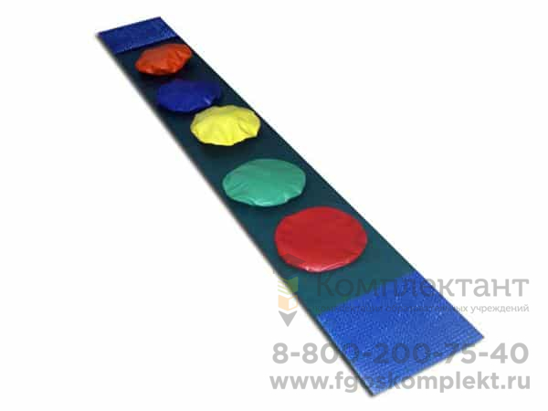 Сенсорная тропа - это дорожка, на которую с помощью липучек крепятся 5 мешочков из прочной ткани с разными наполнителями. Диаметр круга: 30 см. Ходьба по «кочкам» - мешочкам полезна для развития тактильного восприятия, координации и профилактики плоскостопия.