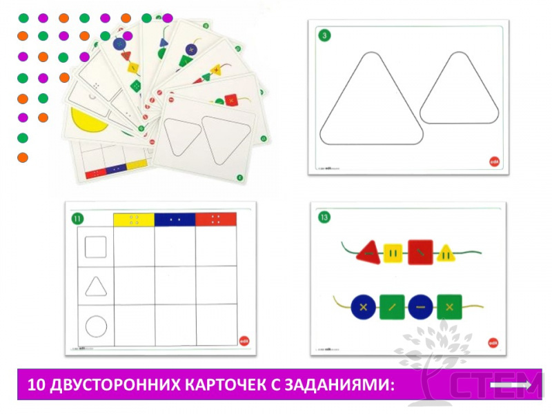 - 10 двусторонних карточек с заданиями разного уровня сложности.