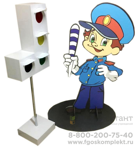 Изделие представляет собой фигуру из пластика в виде светофора с двухсторонним оформлением с пультом управления.