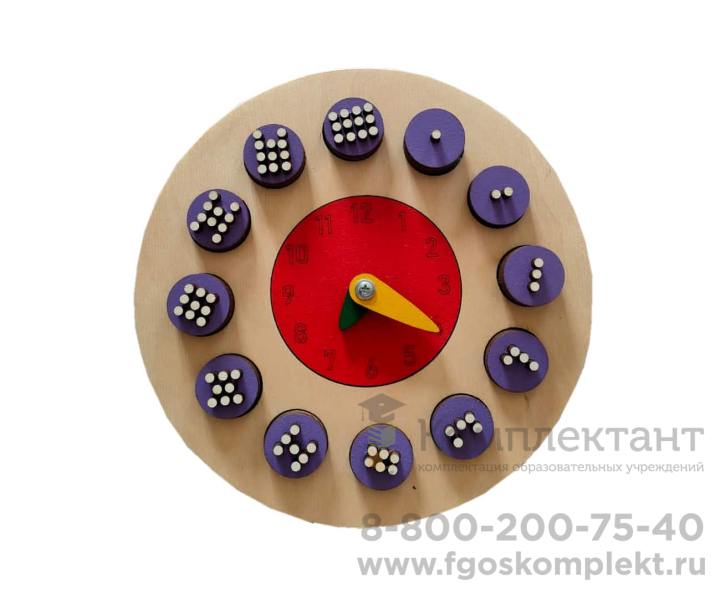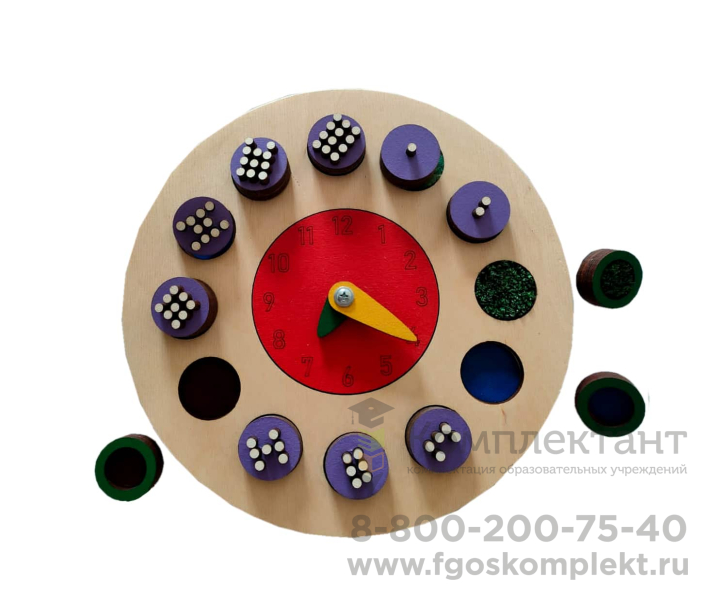 Развивающая панель предназначена для изучения цифр, часов и времени. Игра разработана по принципу циферблата. Стрелки часов показывают время. На дощечки нанесены изображения кружочков в количестве от 1 до 12 шт. Суть игры – правильно вложить дощечки в отверстия. Количество кружочков на вставках должно совпадать со временем на часах. Обучающая панель подойдет для занятий в детских садах, центрах раннего развития, реабилитационных и коррекционных центрах, а также для домашнего пользования.