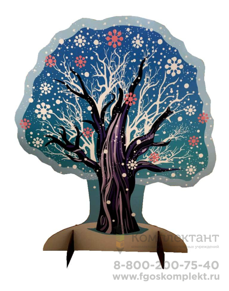 Театральная декорация выполнена в форме дерева с двухсторонним изображением.