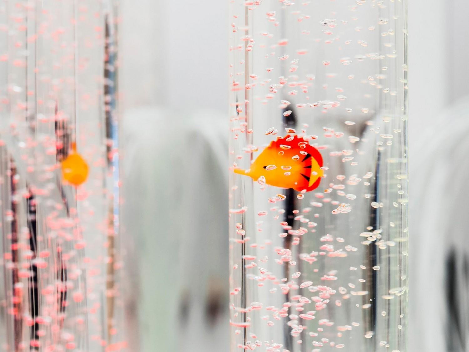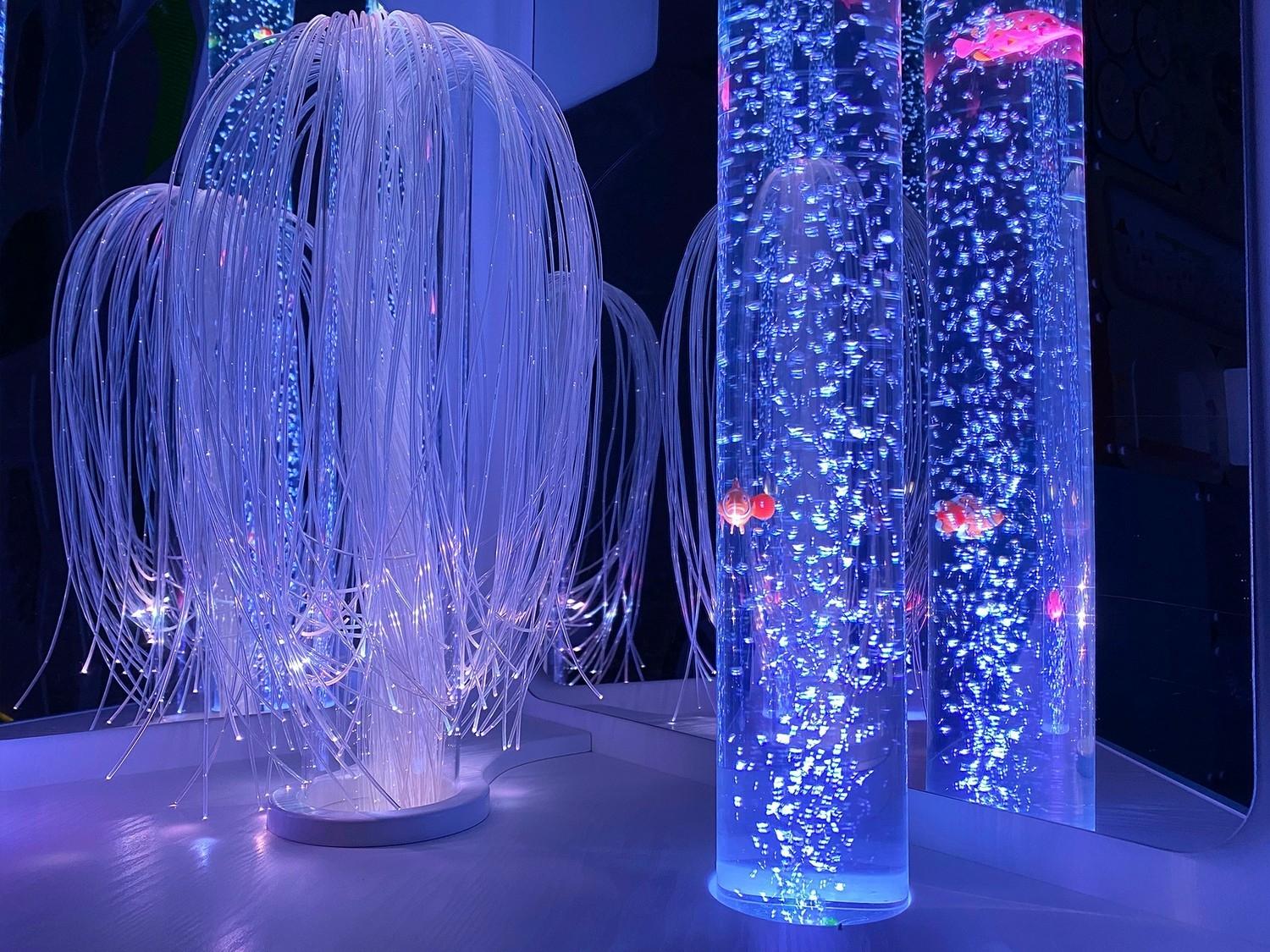 Воздушно-пузырьковая колонна имеет цветную подсветку, цвета в которой плавно сменяются. И вместе с кружащимся потоком пузырьков это производит на человека завораживающее действие. Хочется ни о чём не думать, просто сидеть и смотреть.