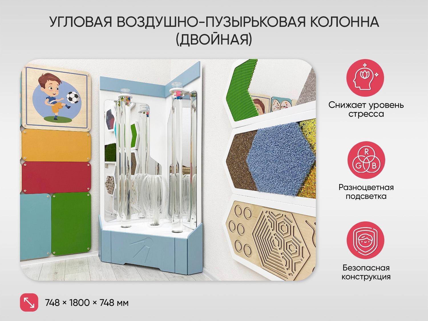 Воздушно-пузырьковая колонна для оформления комнат сенсорной разгрузки и кабинетов детских психологов. Помогает отключиться от эмоциональных переживаний и напряженного мыслительного процесса и окунуться в сенсорные ощущения.