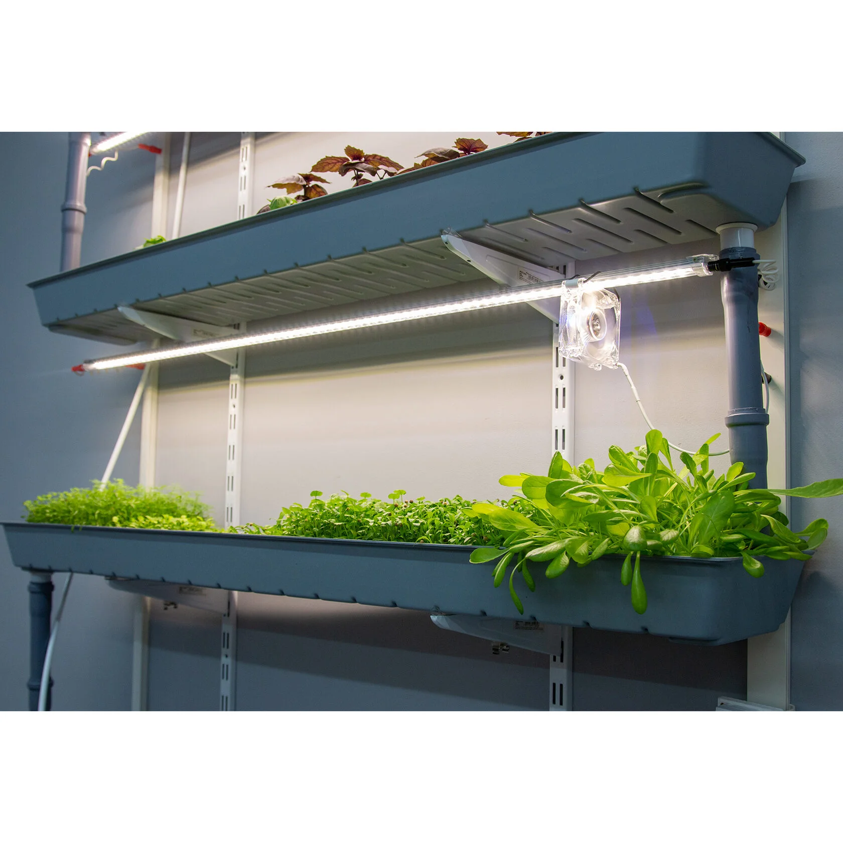 • 3 Энергоэффективных фито-светильников длиной 117 см (156 полно спектральных светодиодов и 30 с длиной волны 625 Нм–красный цвет) 25 Вт, 12 В. Система лёгкого, без использования инструментов, изменения количества, высоты подвеса и направления светового потока на каждом этаже