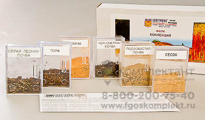 Состав коллекции: образцы черноземной, серой лесной и подзолистой почв, образцы песка, глины и торфа.