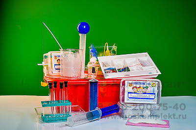 Комплектность: пластиковая пробирка – 4 шт., пробка для пробирки – 4 шт., штатив для пробирок – 1 шт., листы фильтровальной бумаги – 100 шт., ватные диски – 1 уп., воронка – 1 шт., пипетки – 4 шт., ложечка-шпатель – 4 шт., пластиковые стаканы (50, 100, 250, 500 и 1000 мл) – по 1 шт., пластиковый мячик с отверстием – 1 шт., мерный цилиндр (100 мл) с тремя отверстиями – 1 шт., насос ручной – 1 шт., пробка со сквозным отверстием для насоса – 1 шт., шприц (10 мл) – 1 шт., шприц (150 мл) – 2 шт., пробки с несквозным отверстием (12,5 и 14,5 мм) для шприцов – по 1 шт., воздушные шарики длинные – 5 шт., воздушные шарики круглые – 5 шт., большая салфетка (ткань протирочная) – 1 шт., прямоугольная кювета маленькая – 1 шт., прямоугольная кювета низкая – 1 шт., прямоугольная кювета высокая – 1 шт., круглая большая кювета – 1 шт., блистер для мелких деталей – 1 шт., контейнер пластиковый с крышкой – 4 шт., пинг-понговый шарик – 1 шт., свечи-таблетки – 4 шт., машинка с трубкой – 1 шт., фигурка с парашютом – 1 шт., мешочек с песком – 1 шт., кусок мела – 1 шт., силиконовые трубки (длина 14 и 75 см) – по 1 шт., стеклянные трубки (внутренний диаметр 2,5 и 4 мм) – по 1 шт., прозрачная пластиковая пластина – 1 шт., полиэтиленовая пластина – 1 шт., маленькие салфетки (ткань протирочная) – 2 шт., платформа с отверстием для крепления мачты (плот) – 1 шт., палочка-мачта – 1 шт., карточка с контуром паруса – 1 шт., гибкая трубка с пластиной на нитке (удочка) – 1 шт., цилиндр деревянный, пластиковый, алюминиевый и стальной – 4 шт., ведерко с ручкой – 1 шт., цилиндрический сосуд с делениями – 1 шт., крышка для цилиндрического сосуда – 1 шт., подводная лодка с грушей – 1 шт., лодочка с гребными колесами – 1 шт., брошюра с методическими рекомендациями (полноцветная обложка, 60 страниц) – 1 шт.