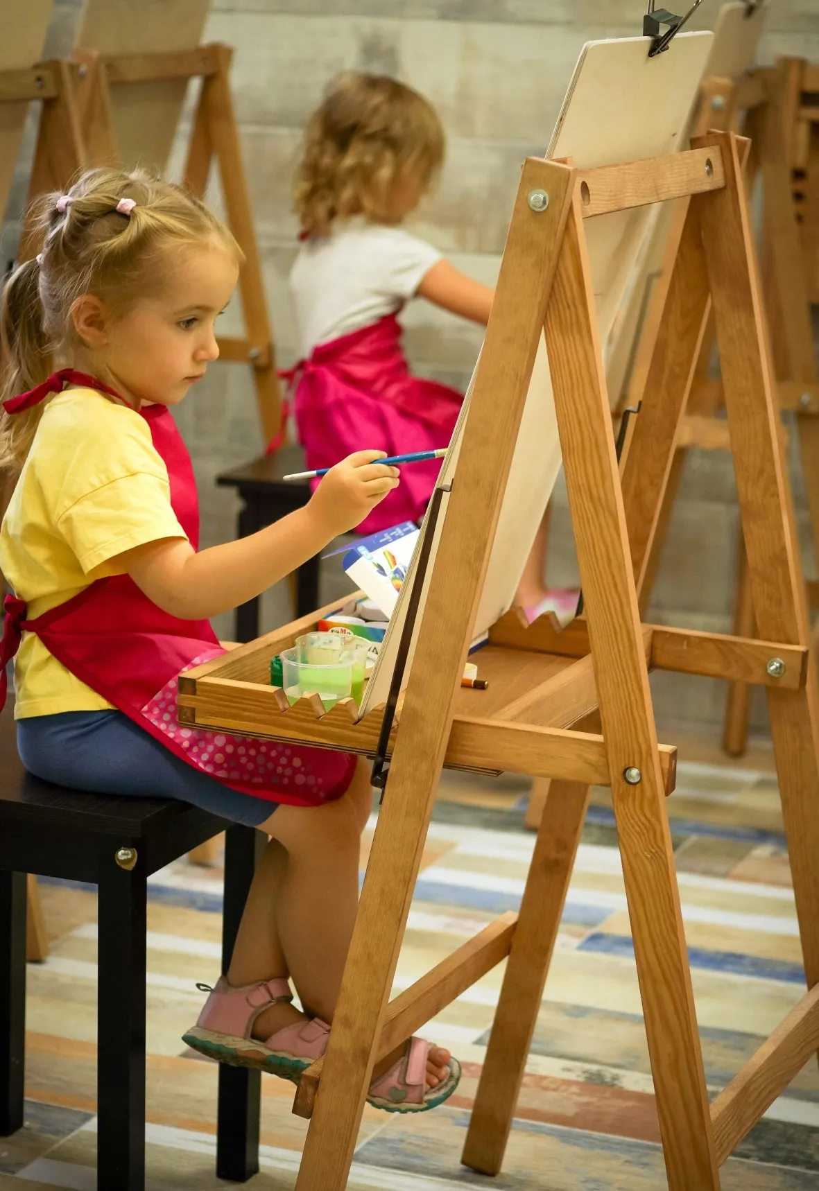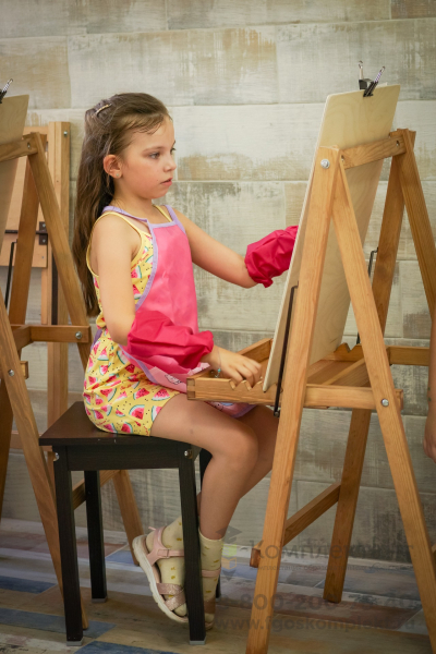 Мольберт складной ученический с полкой для красок кисточек и карандашей.