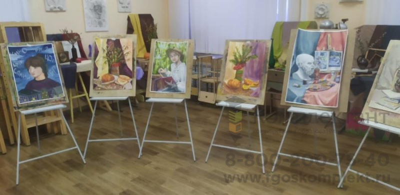 высота 1150 (может быть изменена по Вашим необходимостям), база основания 680х460, высота полки 650. Складная конструкция. Габаритные размеры в сложенном виде, в мм: 1150х680х80. Максимальный размер планшета, в мм: 710х900. Крепление полки выполнено на оси диаметром 10мм и снабжено поворотным шарниром, обеспечивающим горизонтальное положение полки, когда мольберт в разложенном состоянии. Все сварные швы отшлифованы, торцы труб закрыты пластиковыми заглушками. Конструкция позволяет легко раскладывать мольберт в рабочее положение, без дополнительной фиксации винтами. Полка имеет места фиксации планшета в 3-х различных положениях.