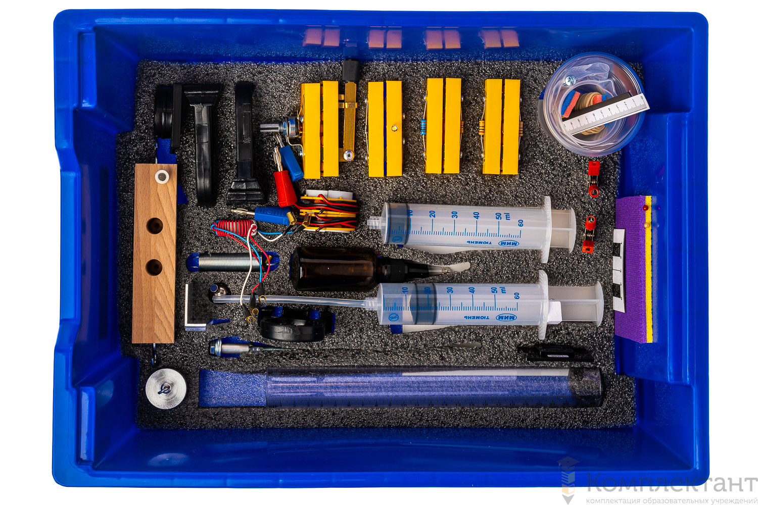 Все оборудование цифровой лаборатории (кроме скамьи) укомплектовано в специальные пластиковые контейнеры, которые закрываются прозрачной пластиковой крышкой. Комплект оборудования и датчики в контейнерах располагаются на ложементах в индивидуальных ячейках. Скамья имеет отдельную упаковку