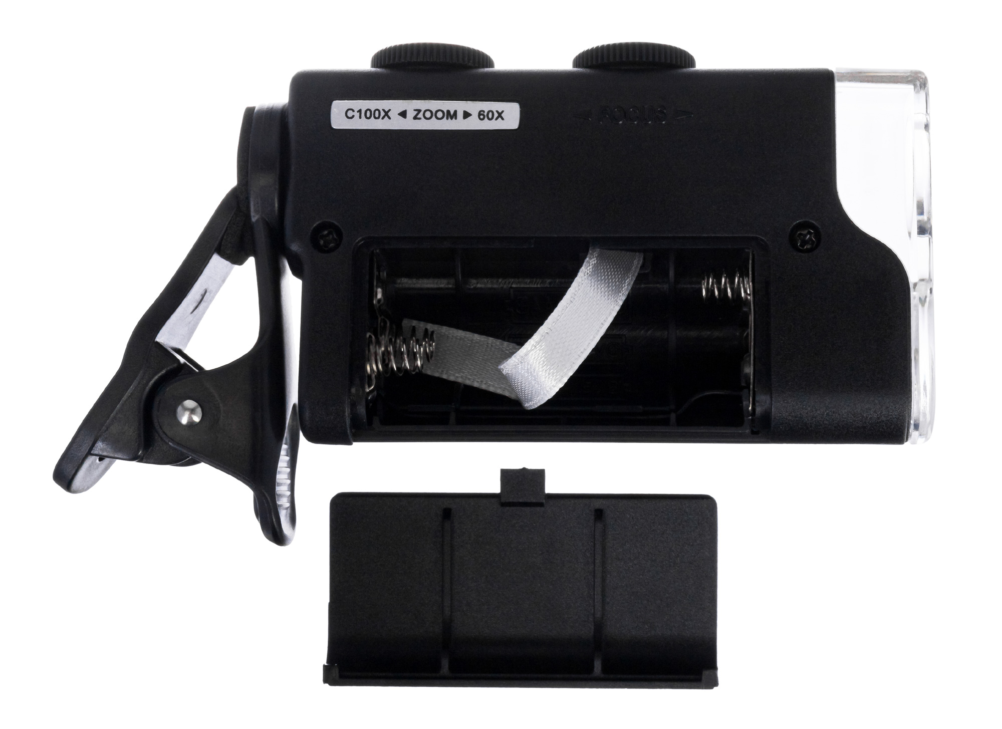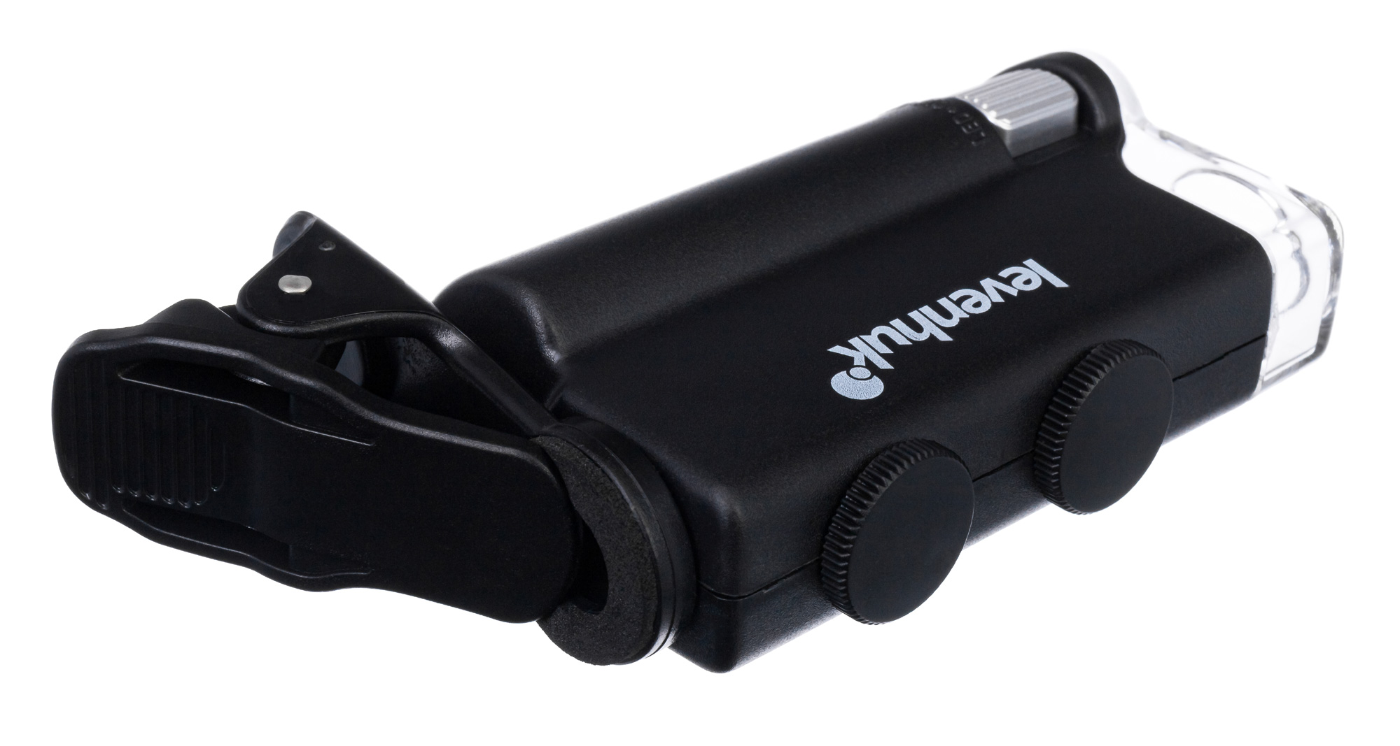 Проверка денег осуществляется при помощи ультрафиолетовой подсветки. В дополнение к ней микроскоп Levenhuk Zeno Cash ZC10 оборудован подсветкой из одного классического светодиода – прибор можно использовать как мощную лупу с изменяемой кратностью. Подсветка работает от батареек (не входят в комплект). Микроскоп может быть зафиксирован на смартфоне или плашнете для фото- и видеосъемки. Увеличенное изображение будет выводиться прямо на экран гаджета.