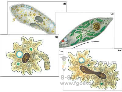 Комплектность: карточка "Инфузория туфелька" – 1 шт., карточка "Эвглена зеленая" – 1 шт., карточка "Амеба обыкновенная" – 1 шт., карточка "Начало деления амебы" – 1 шт., карточка "Окончание деления амебы" – 1 шт., карточка "Две разделившихся амебы" – 1 шт., карточка "Выход амебы из цисты" – 1 шт., карточка "Амеба дизентерийная" – 1 шт., магниты – 4 шт., руководство по эксплуатации – 1 шт.
