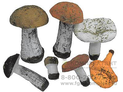 Состав набора: гриб белый, гриб белый малый, подосиновик, подберезовик, лисичка, груздь, сыроежка - по 1 шт.