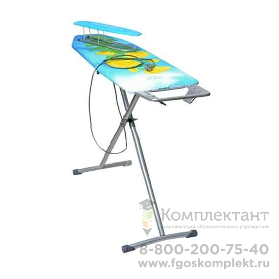 оснащается раскладной крестообразной подставкой, которая позволяет регулировать рабочую поверхность по высоте. Ножки защищены прорезиненными накладками, защищающими пол от царапания. Надежная конструкция позволяет доске стоять ровно и не шататься. Ножки шарнирно соединены между собой болтами, что позволяет складывать доску по окончании глаженья в плоскую конструкцию. Высота плавно регулируется с помощью рычажка и достигает 93 см.Основа из перфорированного металлического листа.В комплекте чехол, изготовленный из качественных х/б тканей. Основа имеет множество отверстий, препятствующих задержке воды при отпаривании. Рабочая поверхность шириной 350 мм позволит удобно гладить большие вещи, например, постельное белье.