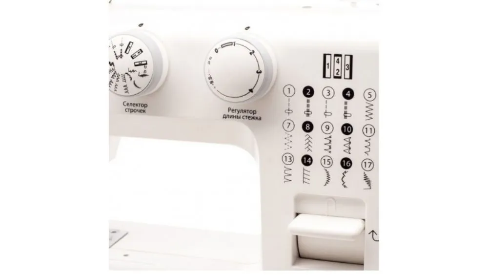 зигзаг, оверлочная, отделка фестоном, потайная строчка, прямая строчка (левое положение иглы), прямая строчка (центральное положение иглы), трикотажные строчки, эластичный зигзаг