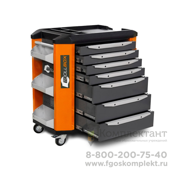 Тележки инструментальные TBP-7 серии ToollBox premium изготовлены в фирменном дизайне верстаков слесарных серии ToollBox.