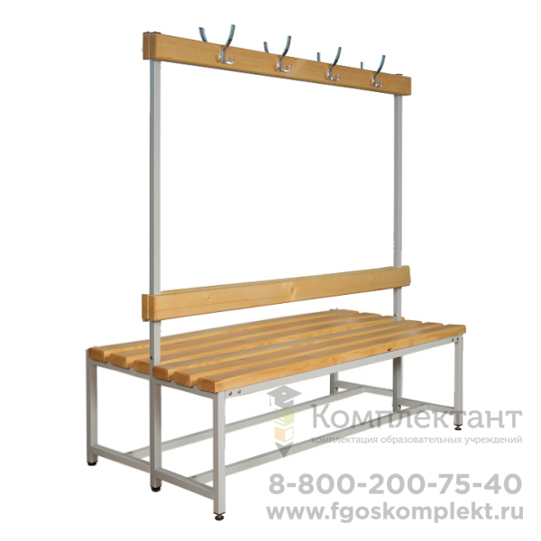 Очень прочная и долговечная двухсторонняя скамья со спинкой и вешалкой.