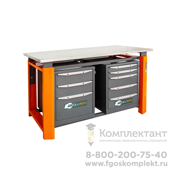Высота столешницы верстака может регулироваться по желанию заказчика в диапазоне 924-1044 мм.