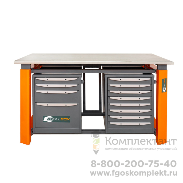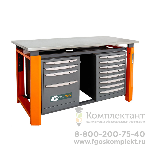 Высота столешницы верстака может регулироваться по желанию заказчика в диапазоне 924-1044 мм.