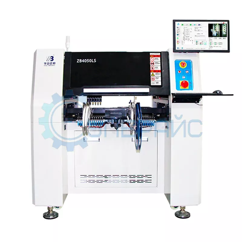 Zhengbang ZB4050LS представляет собой установщик SMD-компонентов, который работает в автоматическом режиме. Это надёжный инструмент для внедрения чипов на печатные платы, который обладает высокой точностью позиционирования и скоростью работы от восьми до одиннадцати тысяч компонентов в час. Количество монтажных головок составляет шесть штук.