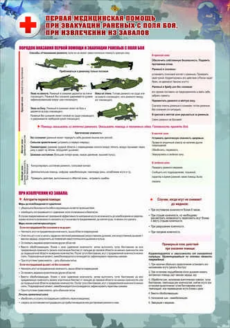 - Первая медицинская помощь при эвакуации раненых с поля боя, при извлечении из завалов
