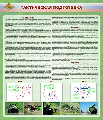 Стенд с информацией об особенностях ведения боевых действий и тактической подготовке. Предназначен для размещения в кабинете ОБЗР и военной подготовки в образовательном учреждении.