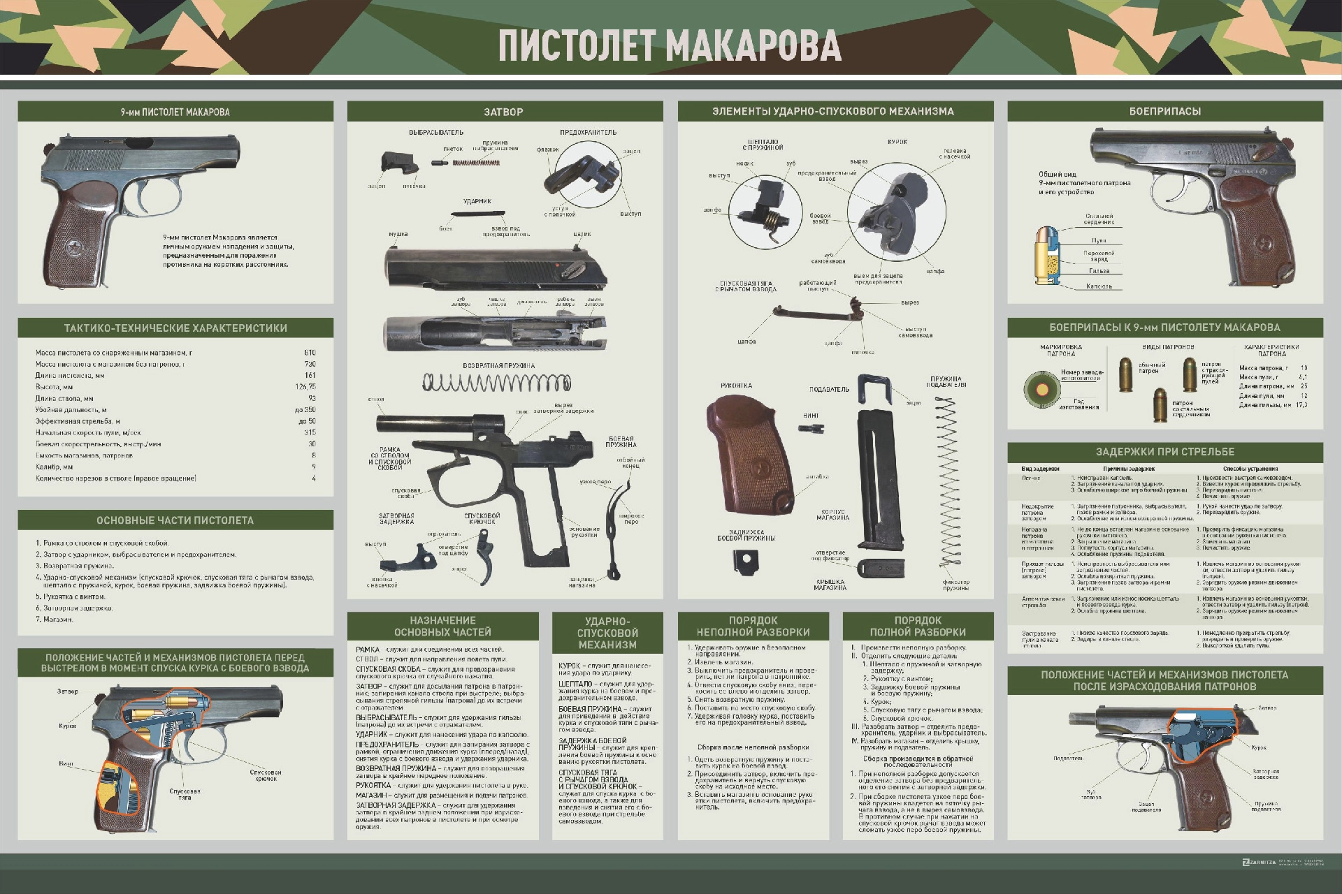 Стенд представляет собой полноцветную панель, на которой размещена информация по пистолету Макарова, включающая:
