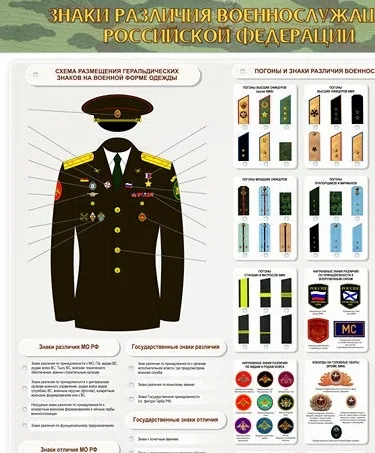 Стенд-планшет представляет собой панель, на лицевой части которой изображены основные знаки различия военнослужащих Российской Федерации