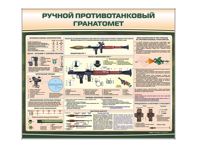Стенд представляет собой полноцветную панель, на которой размещена информация по ручному противотанковому гранатомёту, включающая в себя: