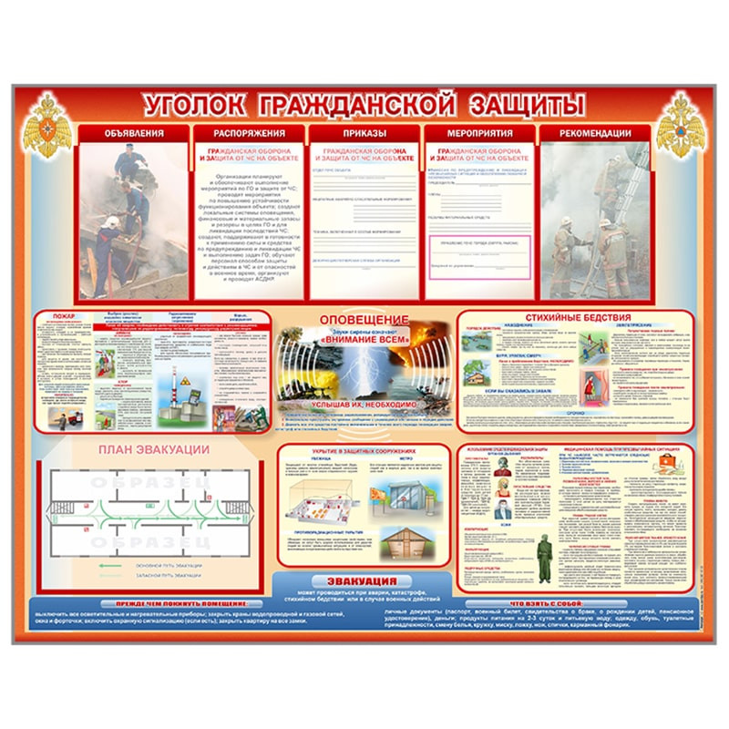 Стенд-уголок "Уголок гражданской защиты" предназначен для общеобразовательных и административных учреждений, для наглядного и красочного отображения основной информации о чрезвычайных ситуациях, пожарах и т.д.