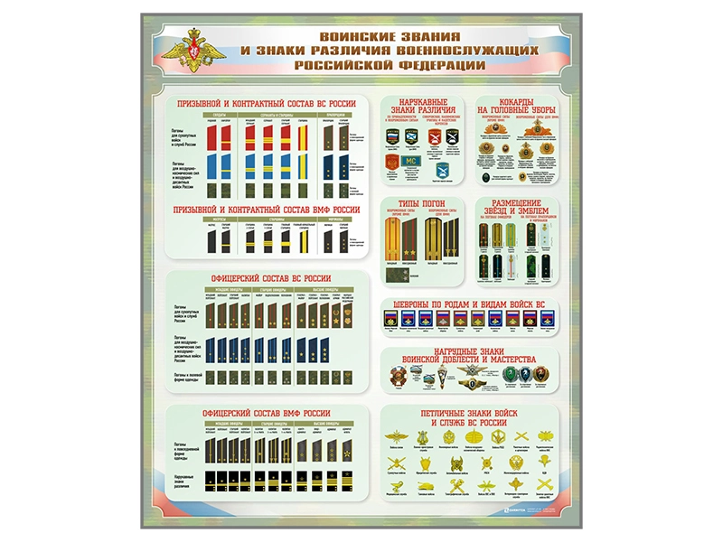 Стенд предназначен для наглядного отображения информации о воинских званиях и знаках различия, а также для формирования у учащихся или курсантов представления об особенностях военной службы.
