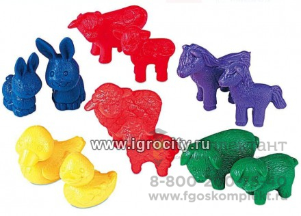 Учиться и играть станет еще интереснее с этими очаровательными животными! Эти замечательные фигурки помогут маленькому исследователю научиться считать, распределять и классифицировать, устанавливать соответствия. Способствуют развитию образного мышления, дают огромный простор для фантазии и могут применяться в большом количестве разнообразных обучающих игр. Набор состоит из 6 видов животных: взрослые животные и их детеныши. В наборе: овечки с ягнятами уточки с утятами крольчихи с крольчатами лошади с жеребятами свинки с поросятами коровы с телятами На этих мягких резиновых фигурках не остаются отпечатки. Размеры взрослых животных – 4,5 см Размеры детенышей – 2,5 см Дополнительно к набору "Мамы и малыши" Вы можете приобрести симпатичные сортировочные таблицы на липучках "Животные". Эти таблицы созданы специально под набор "мамы и малыши". Цвета и форма фигурок в ассортименте без возможности выбора!