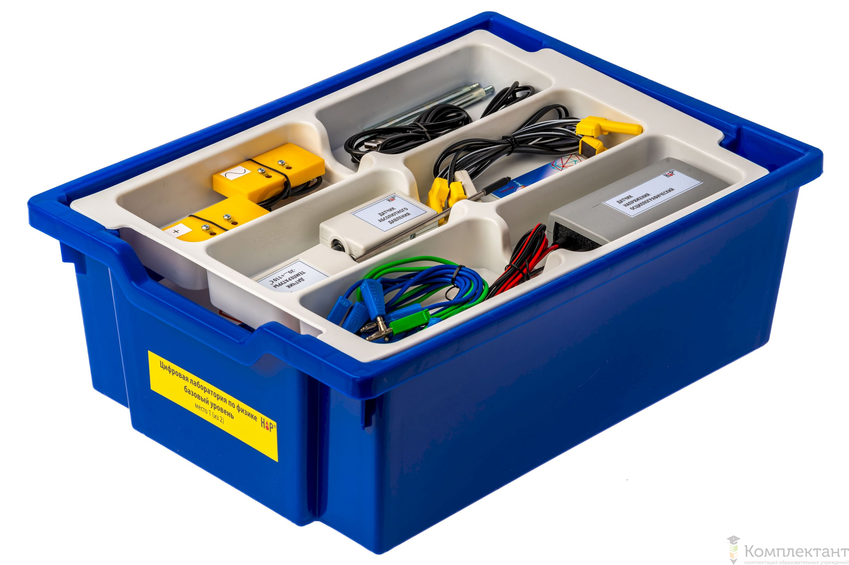 Все оборудование цифровой лаборатории (кроме скамьи лабораторной) укомплектовано в пластиковую систему хранения, который закрывается прозрачной пластиковой крышкой на защелках для обеспечения наблюдения за содержимым. Комплект оборудования и датчики в системе хранения располагаются на ложементе в индивидуальных ячейках.
